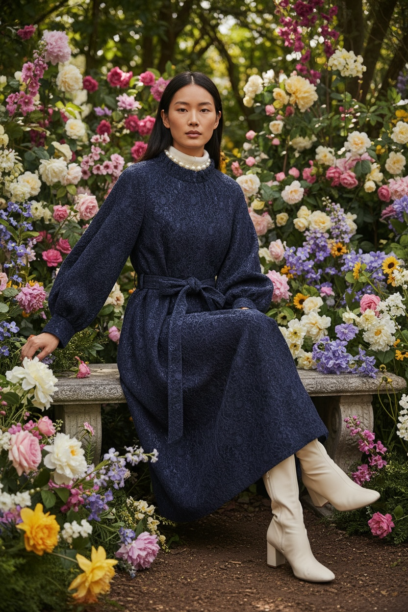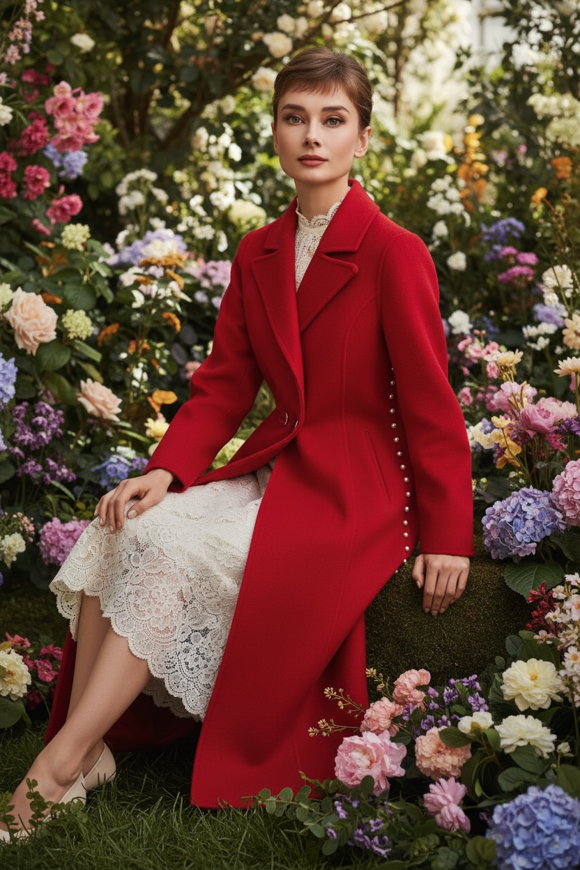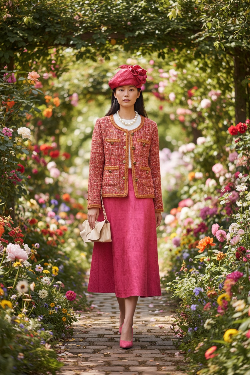 花咲くパリの午後。 舞台の幕が上がる前のように、少しの緊張と、やわらかなときめきを纏って。深みのあるローズピンクと、繊細なツイードの光。 冬の街にも、華やぎを添えるスタイルです。