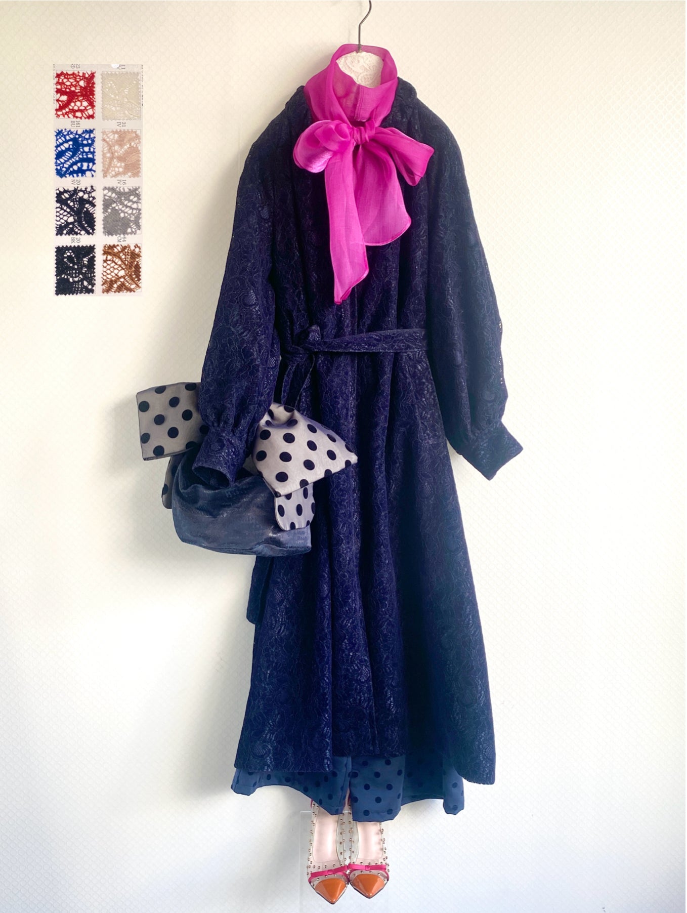 高級レースで作る上質で高級感溢れるコートです.中にたっぷり着こなしができてそれでいてすっきり見えるデザインとなってます。レースの色はお好みに選べます。サイズ長さご希望に作れます。