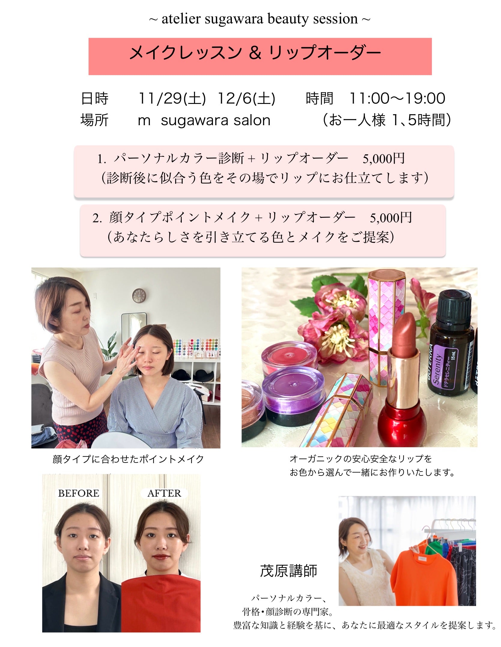1.	パーソナルカラー診断 + リップオーダー 5,000円